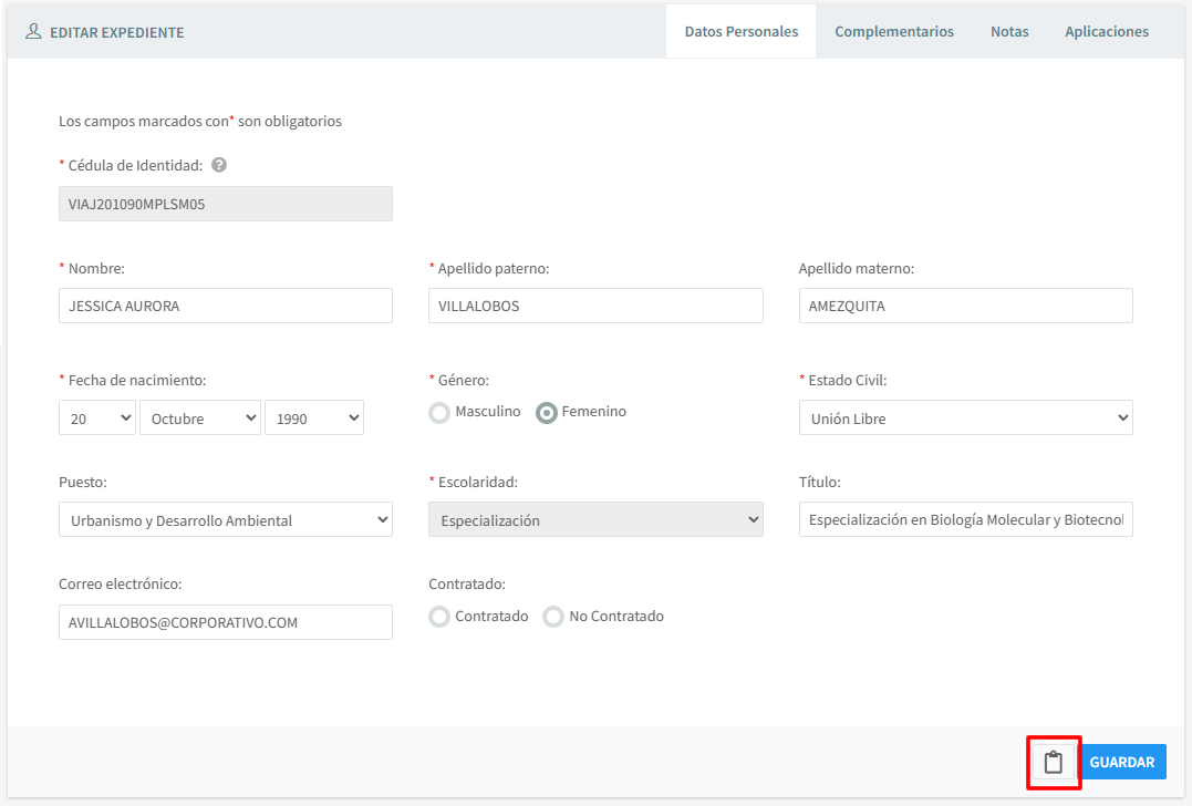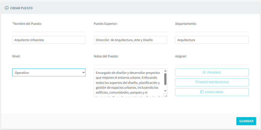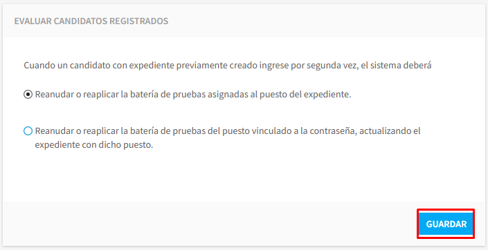 La información que guardó en este apartado se mostrará al candidato cuando ingrese a aplicar sus pruebas.