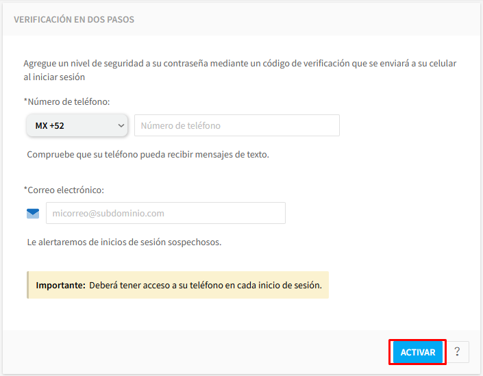 Importante: Deberá tener acceso a su teléfono en cada inicio de sesión.