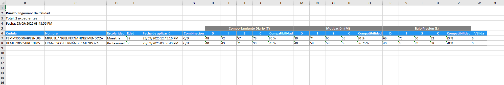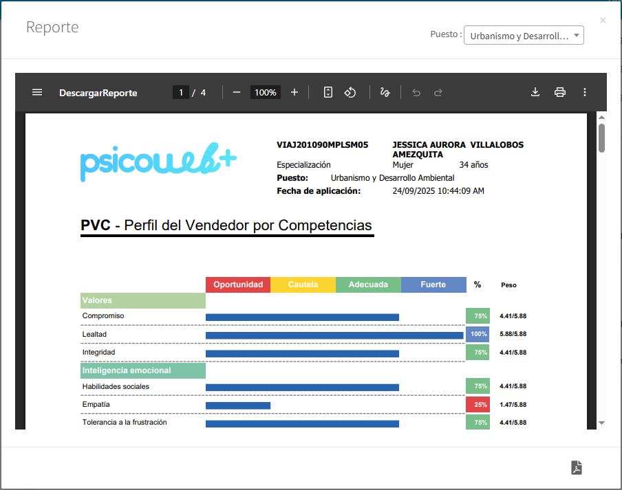 1.-Evaluación psicológica del Candidato a partir de los Resultados de los Test Psicométricos.