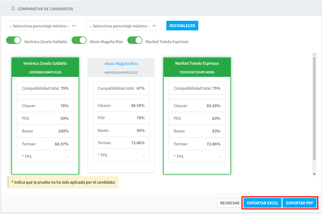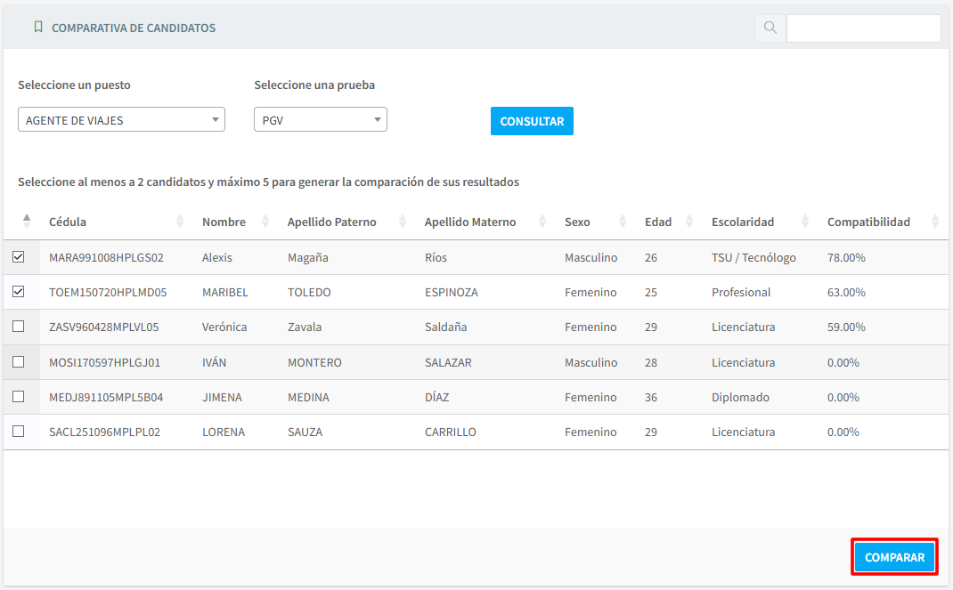 Evaluar candidatos registrados