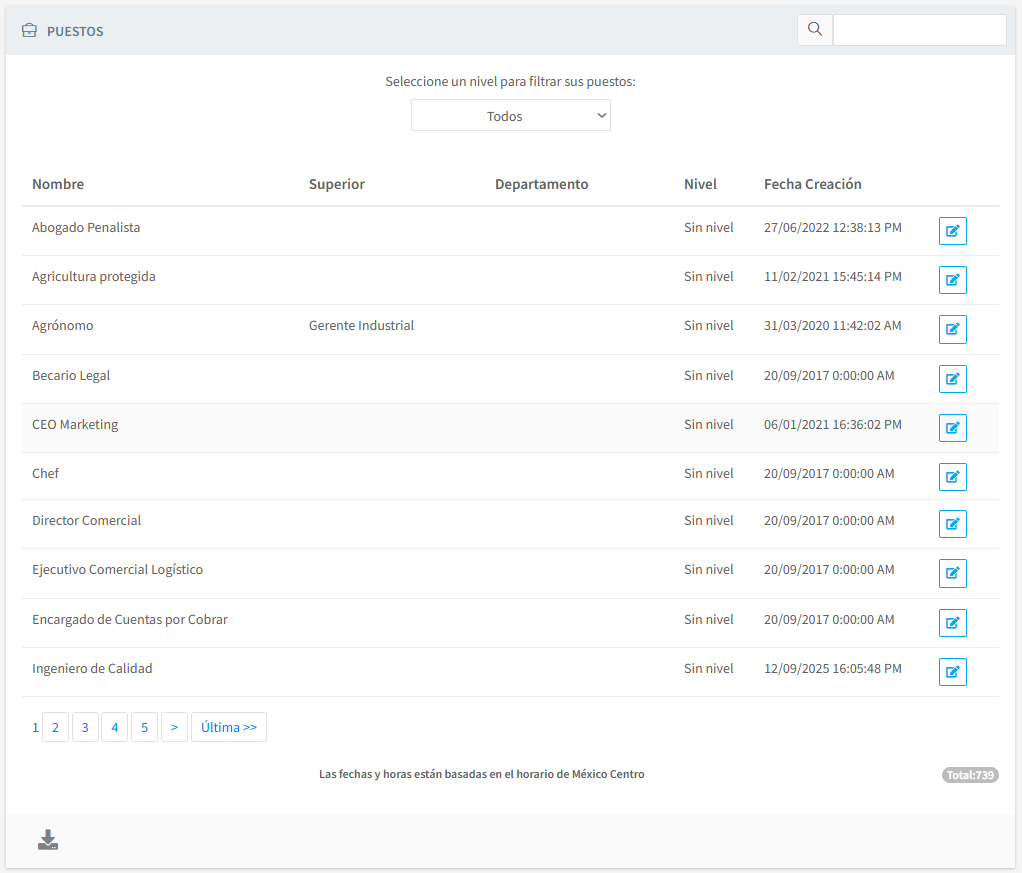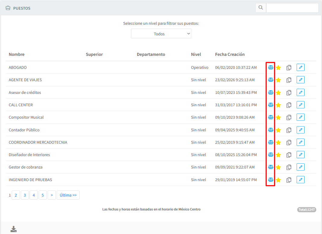 Nota: Solo administradores pueden cambiar el nivel de seguridad.