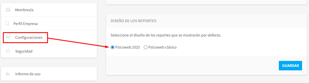 Podrá seleccionar el diseño de reporte para la visualización de los reportes, mediante el botón Guardar.